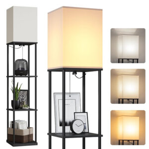 Multilayer Storage Bookshelf Floor Lamp Simple Living Room Bedroom Night Light Display Natural Wood Standing Lamp