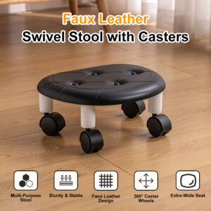 Faux Leather Stool with Wheels, Modern Simple Bedroom Plastic Stool with Casters for Home Living Room, Children’s Small Stool with Omnidirectional Wheels