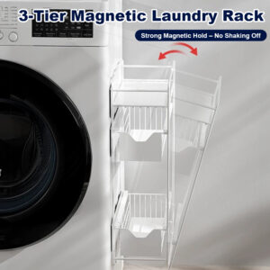 Magnetic Side Rack for Laundry, 1pc – Metal Pull-Out Storage Organizer for Washing Machine, Non-Food Contact Household Supplies Holder